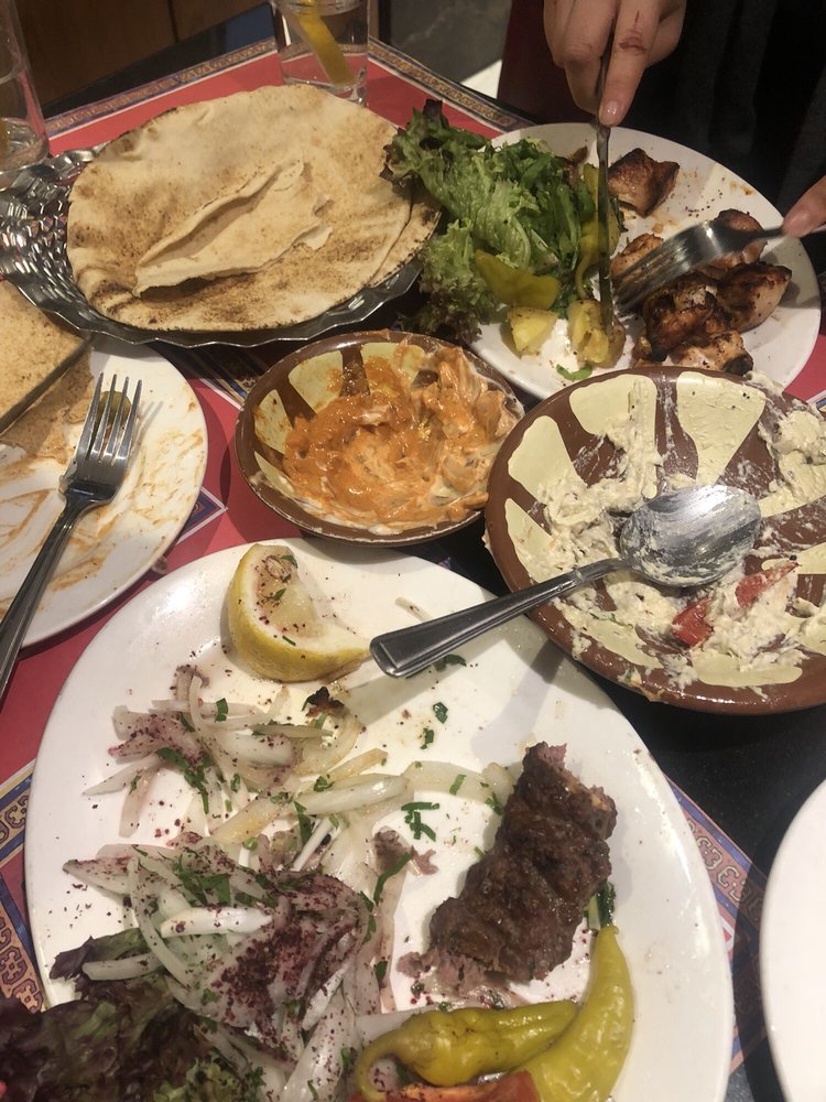 The menu features an array of delectable options, with highlights that include aromatic kebabs, creamy hummus, and warm, fluffy pita bread, each crafted with the finest ingredients. The full bar complements your meal beautifully, offering a selection of refreshing beverages.